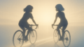 未来から旅をするレックとビアンが、三河湾と蒲郡を走る愛知編第2章。海と街のあいだで、アンドロイド・ビアンの胸に名のない記憶が揺れ始める、並んで走る時間が心の輪郭を少しずつ形づくっていく、静かなサイクリング旅。