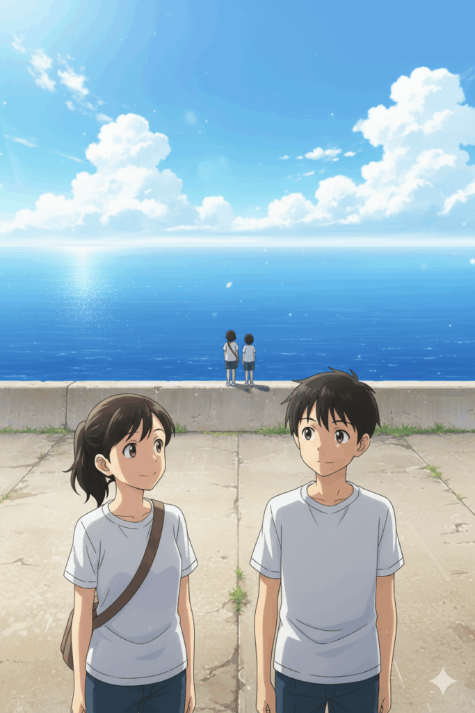 そして──防波堤の先に、二人の小さな影が並んでいた。