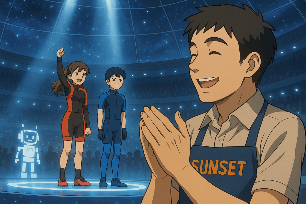 アキはガッツポーズ、ヒロは肩で息をしながら笑った。