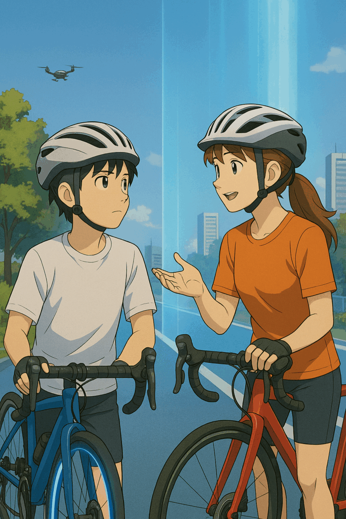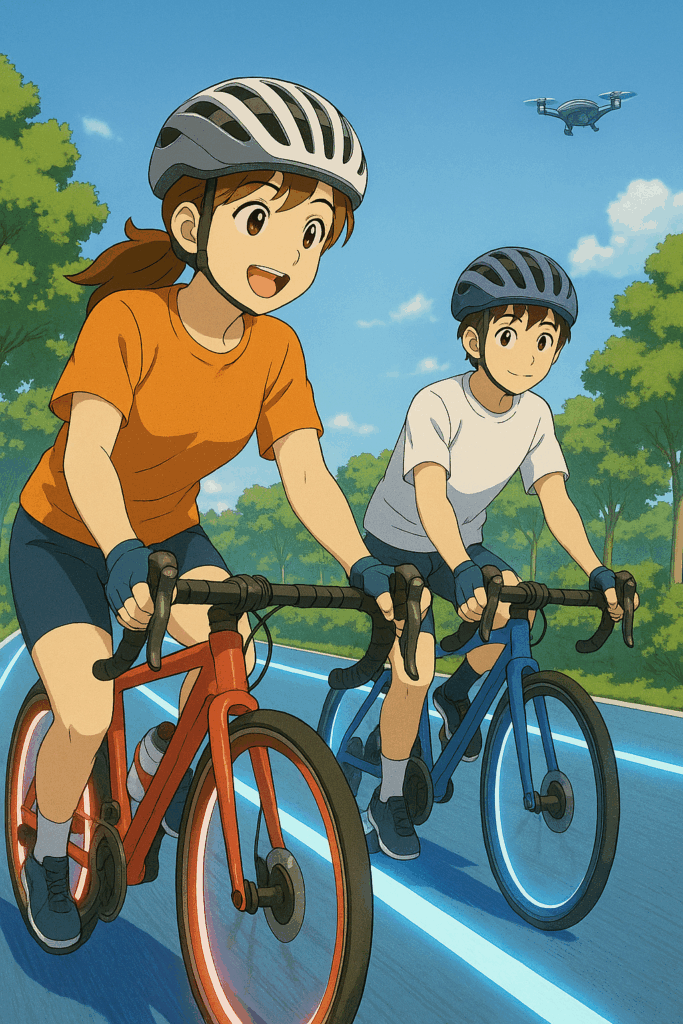 ヒロが笑いながら隣を走る。彼の青いタイムサイクルも静かに光を放っていた。