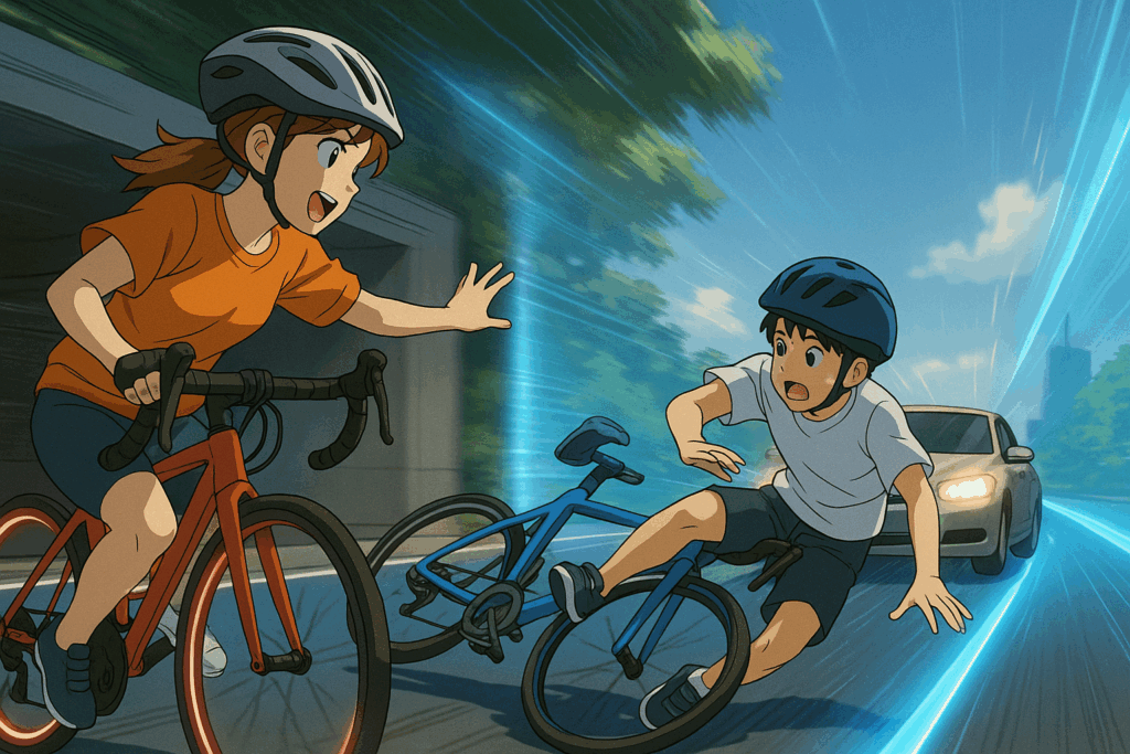 ヒロは反射的にブレーキを握った。だが、反応が一瞬遅れた。