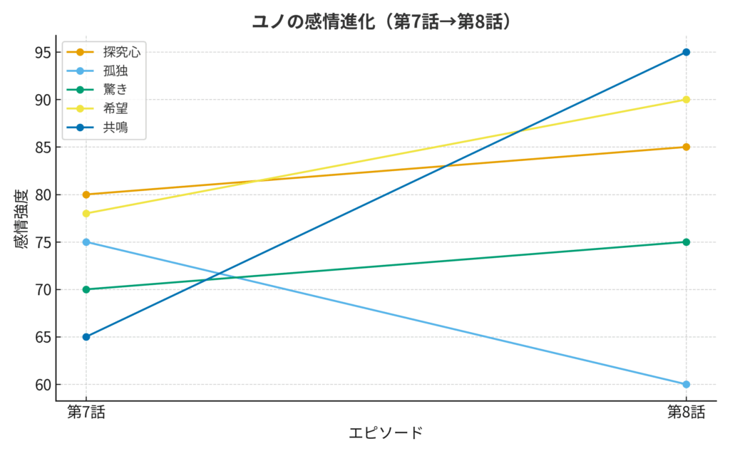 → 縦軸=感情の強度、横軸=時間軸(第7話→第8話)